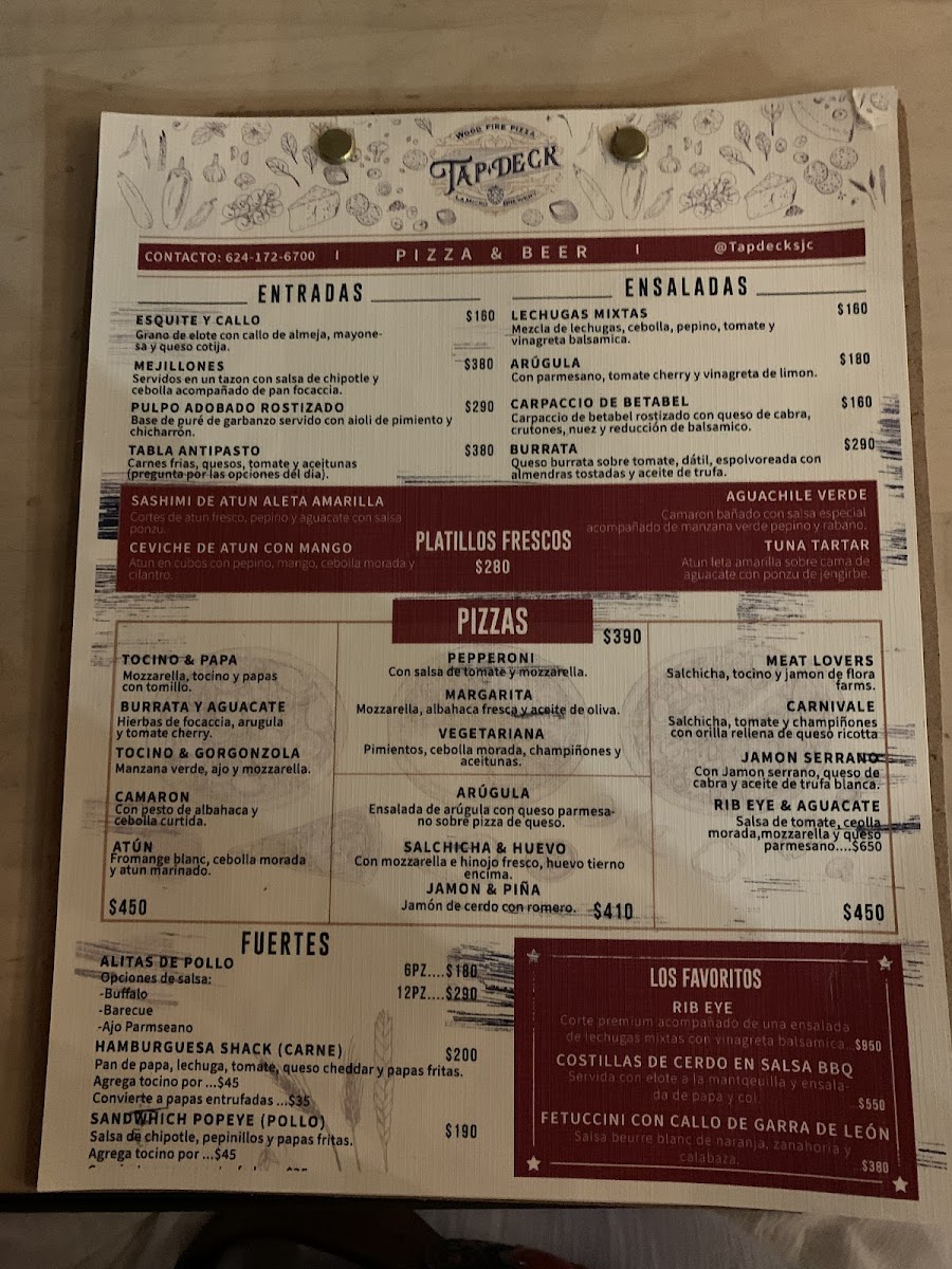 Tap Deck SJC, nestled in the heart of Zona Hotelera, is a culinary gem that promises an unforgettable dining experience. This vibrant eatery specializes in wood-fired pizzas, celebrated for their perfect crust and quality ingredients. As one reviewer passionately noted, it's easily the best pizza in the Cabo area, crafted with house-made dough using premium Caputo flour.